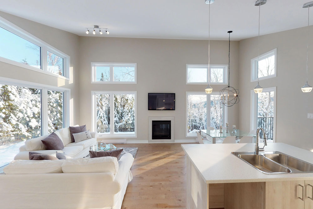 - Open-plan living room, kitchen and dining room, beautiful windows
